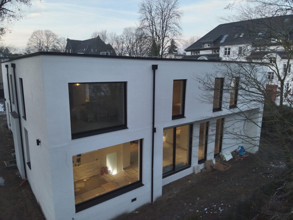 Das ursprüngliche Gebäude aus den 70er Jahren war in die Jahre gekommen und ging in seiner prachtvollen Umgebung beinahe unter. Im Rahmen einer vollumfänglichen Sanierung und Erweiterung strahlt diese neu erschaffene Stadtvilla über die Grundstücksgrenzen hinaus. Auch energetisch befindet sich das Gebäude nun auf höhem Niveau (KfW-55).